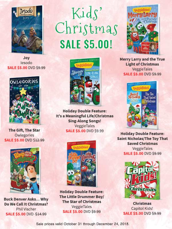 Stock up on fun, faith-filled stocking stuffers for your little ones and save! Not only do we have lots of DVDs, we also have a unique selection of kids’ books, Bibles, toys and music.