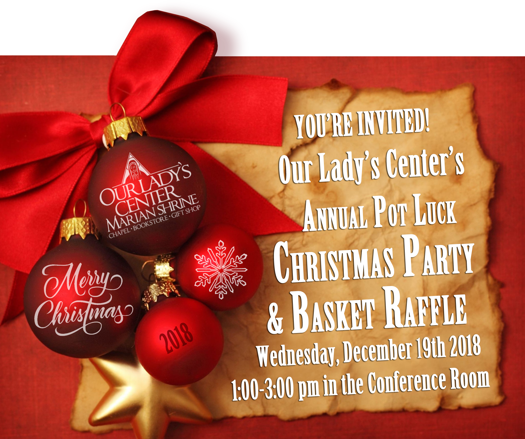All of our beloved patrons and supporters, are invited to come celebrate with us after Mass on Wednesday, 12/19, so mark your calendars now! It's a POT LUCK, so let us know what dish you'd like to share (so we don't have 20 hams!)