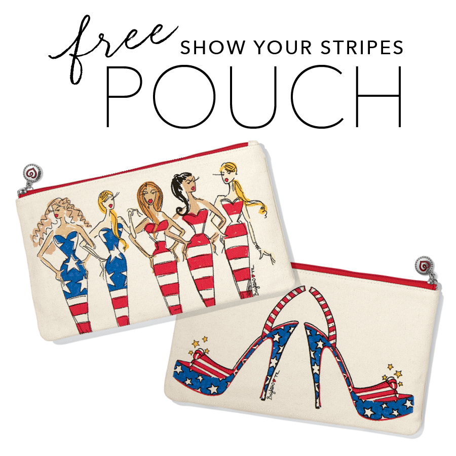 With a single same-day purchase of $75 or more in Brighton personal accessories receive this Show Your Stripes Pouch absolutely FREE!* *Limit one per customer, while supplies last. See Store for details!